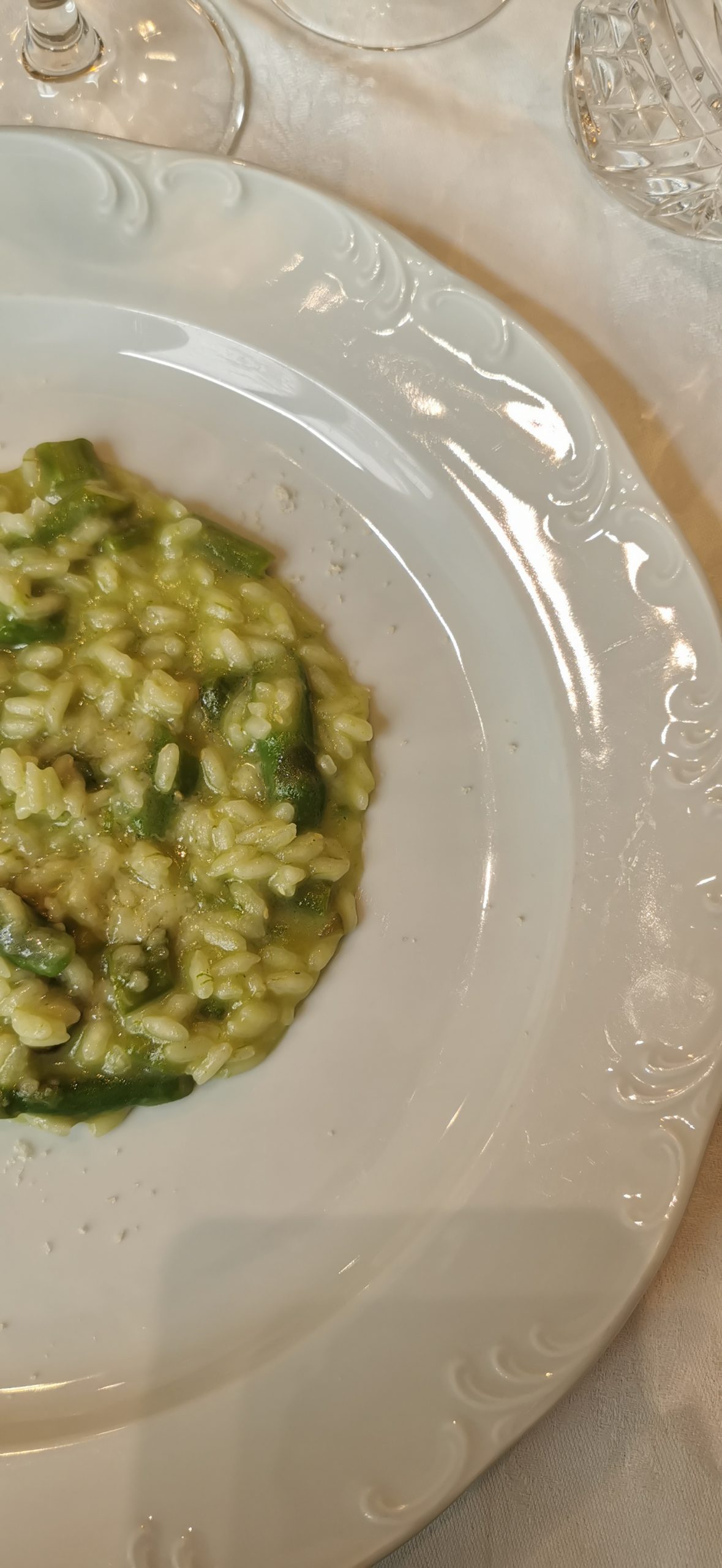 Il risultato è un bianco dal bouquet abbastanza complesso, che sostiene bene un piatto piuttosto articolato come un risotto con gli asparagi, che sono un ingrediente di non facile abbinabilità e che può mettere in difficoltà il migliore dei sommelier.