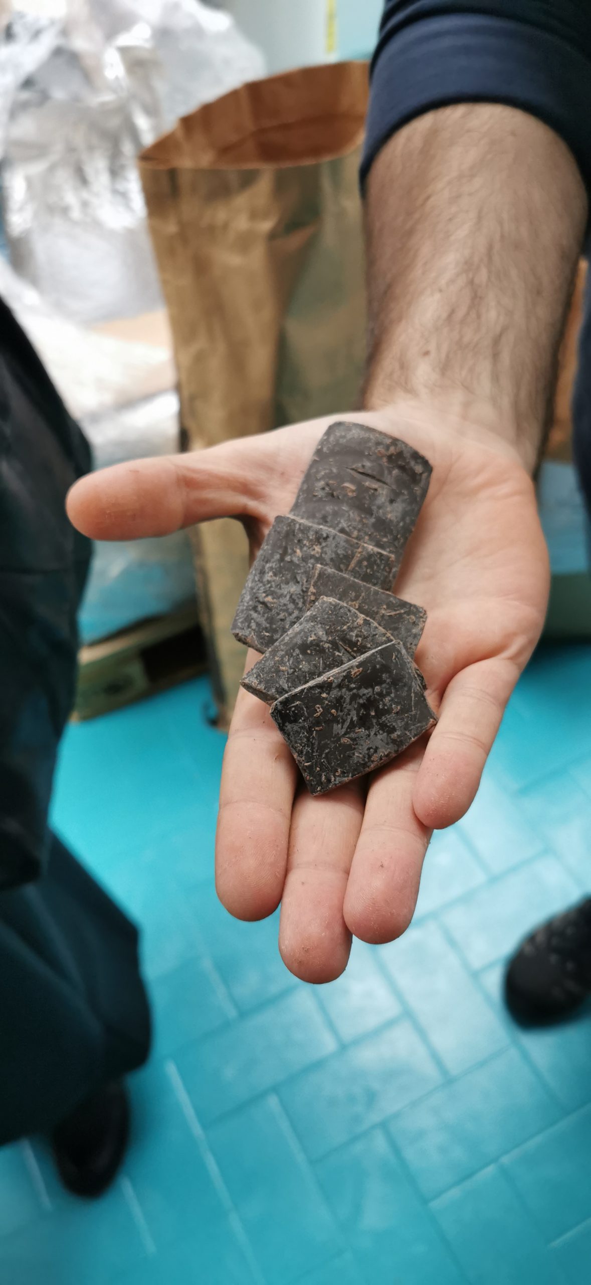 E quanto può esserci di più artigianale della lavorazione di questi gianduiotti estrusi, che non prevedono l’uso di uno stampo? Io lo trovo estremamente poetico.