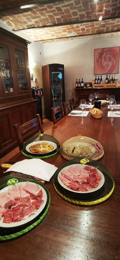 Non mi sarei aspettata che Antonio ci facesse assaggiare il Nebbiolo – decisamente più strutturato – prima della Barbera. “Certo, altrimenti non te lo godi come dovresti”. E col senno della degustazione le mie papille hanno dato ragione ad Antonio. Questo Nebbiolo d’Alba superiore 2018 con i sentori di viola e rosa – tipici del vitigno – e la sua balsamicità, è perfetto con gli affettati e la robiola langaroli.