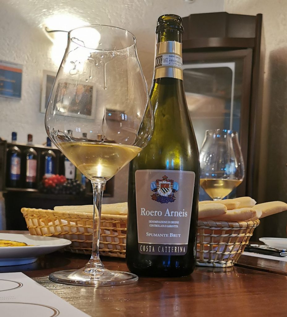 Interessante questo spumante brut 2018 metodo Charmat lungo da uve 100% Arneis, che con i sentori di crosta di pane e frutta a polpa bianca, si porta bene i suoi quattro anni e accompagna vivacemente il nostro piatto di salumi.