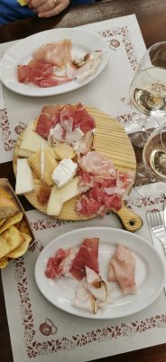 E dopo un sentiero tra i boschi che vi consiglio di seguire se siete piuttosto allenati (diversamente tornate alla scalinata), finalmente arriviamo in centro e ci sediamo ai tavoli dell’Enoteca del Soave, dove una brillante ostessa ci consiglia un tagliere misto con prodotti tipici della Lessinia e due calici, uno di Soave classico e un Metodo classico 2011 di Corte Tamellini, davvero entusiasmante, tra i migliori mai bevuti.