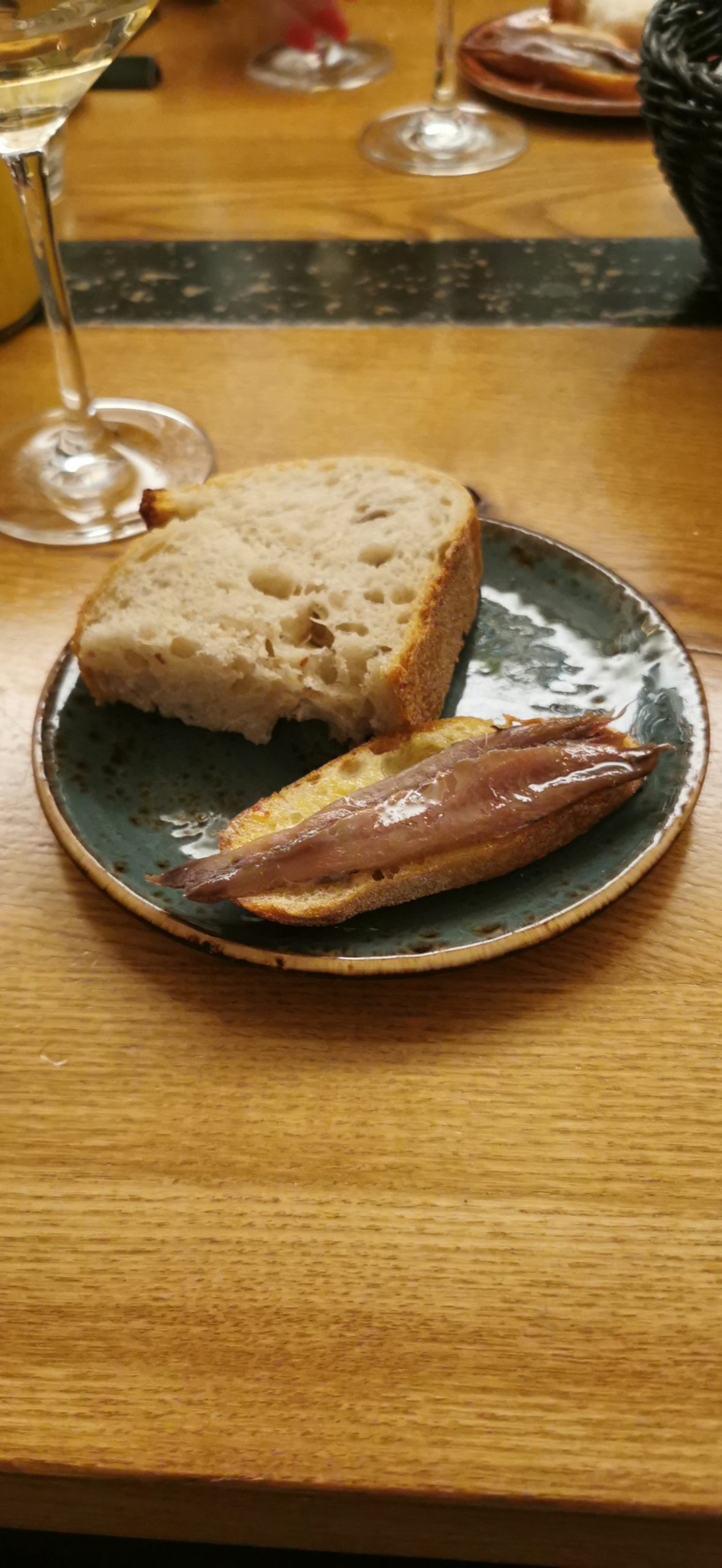 Le acciughe di Mongetto con il Moscato Canelli 2018 di Cascina Barisel. Tra gli abbinamenti più riusciti proprio per la sapidità in contrasto con la dolcezza del vino.