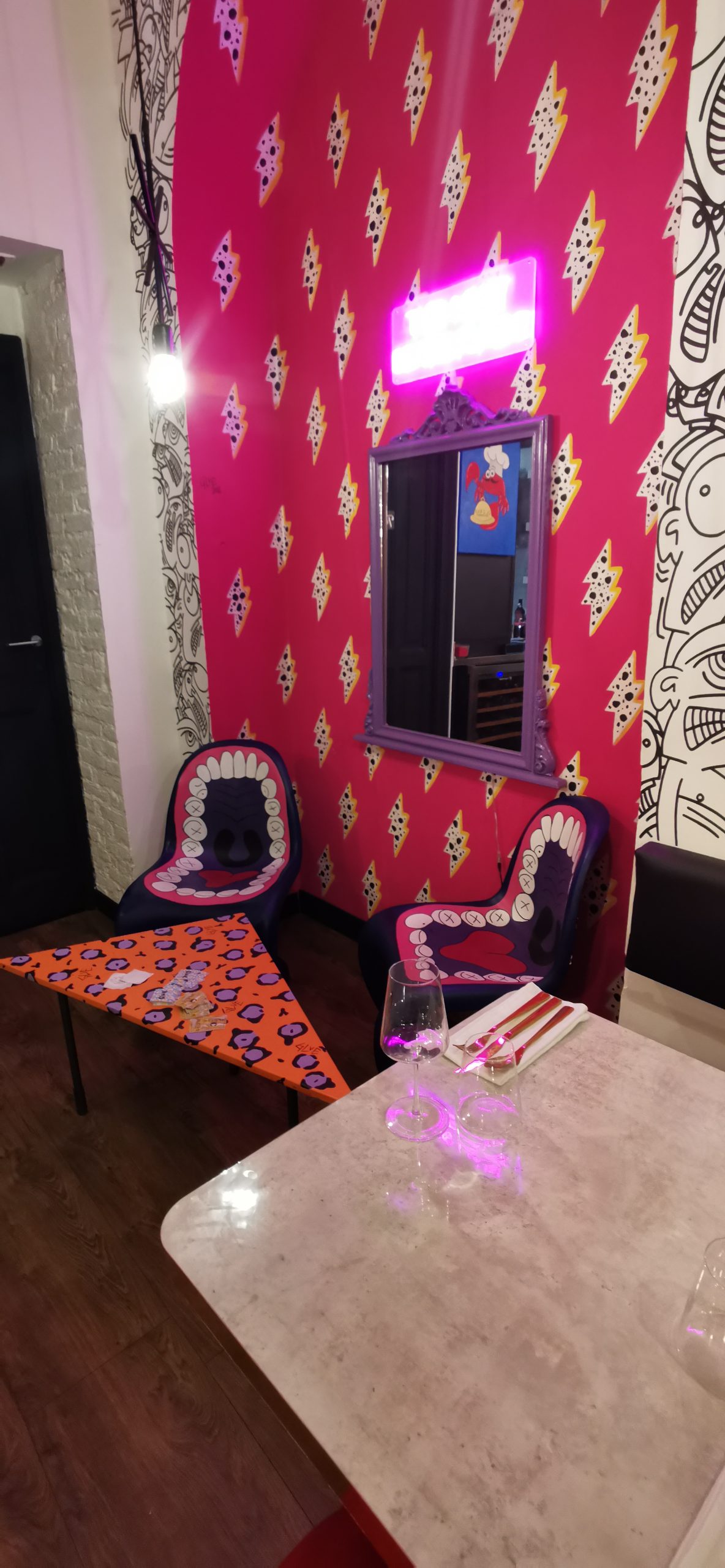 Enzo Bonaga e Laura Artuffo sono una coppia nella vita e nel lavoro, uniti dall’estro creativo che coniuga arte e cibo e dall’articolo “el“, che è anche l’acronimo delle iniziali dei loro nomi. Di origini peruviane lui – il “crab” – quel granchio che si nasconde, che si sposta senza mai filare dritto ma andando controcorrente secondo i propri schemi. Interior designer e stilista lei, che con audacia ha arredato il loro locale decisamente “disruptive”, in cui la sua anima dirompente ed estrosa si ritrova nelle sedie che emulano troni di una saga fantasy non ancora scritta, e nelle pareti con grafiche shocking, insieme ai murales realizzati dall’artista internazionale Andrea Galvagno in arte Galo. Aperto a giugno 2022, El crab si sta facendo notare nella Torino dalle mille nuove aperture.