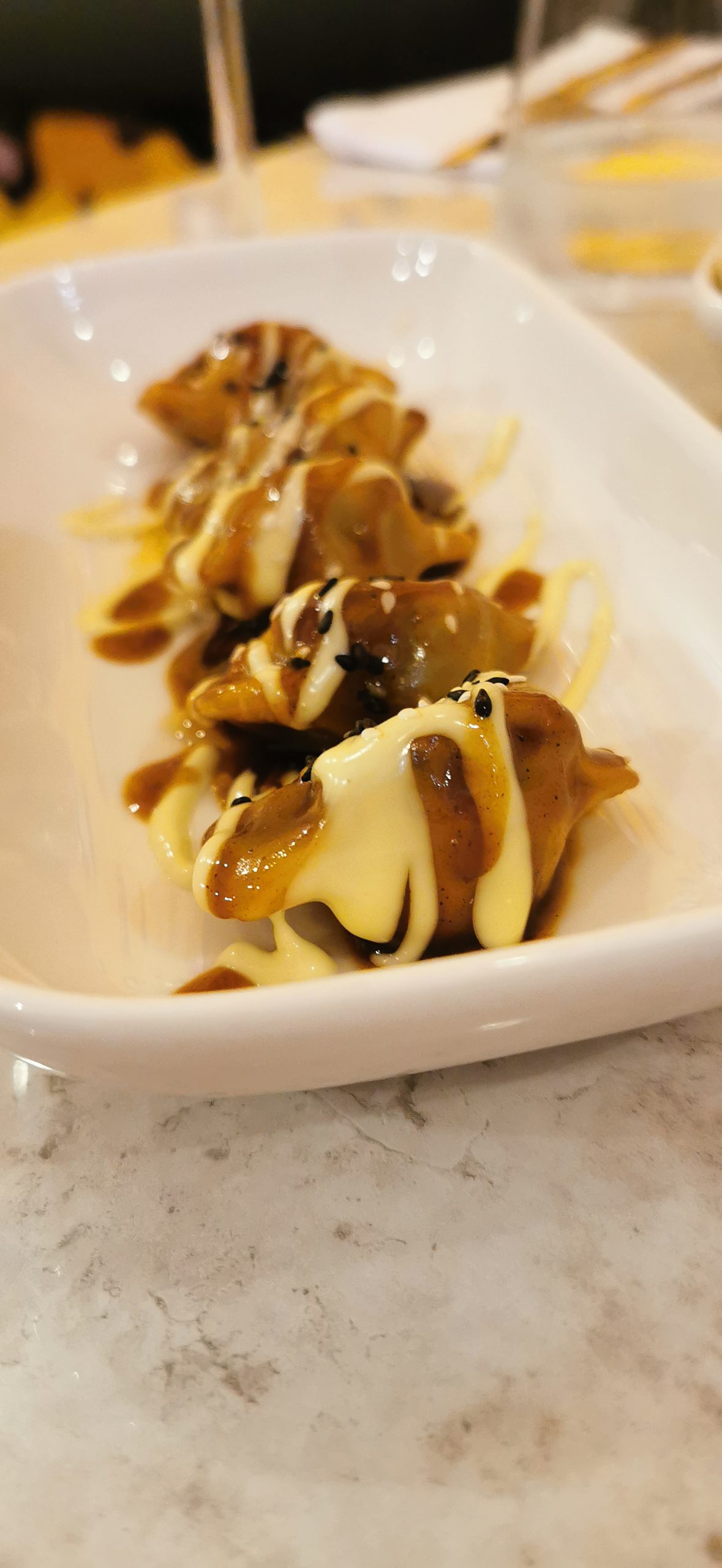 I gyoza di funghi sono stati una sorpresa per il fondo di verdure totalmente vegetale al quale non ero abituata, perfetto anche per i vegetariani ai quali Enzo ha pensato dedicando loro alcuni piatti molto interessanti indicati nel menu con una fogliolina verde.