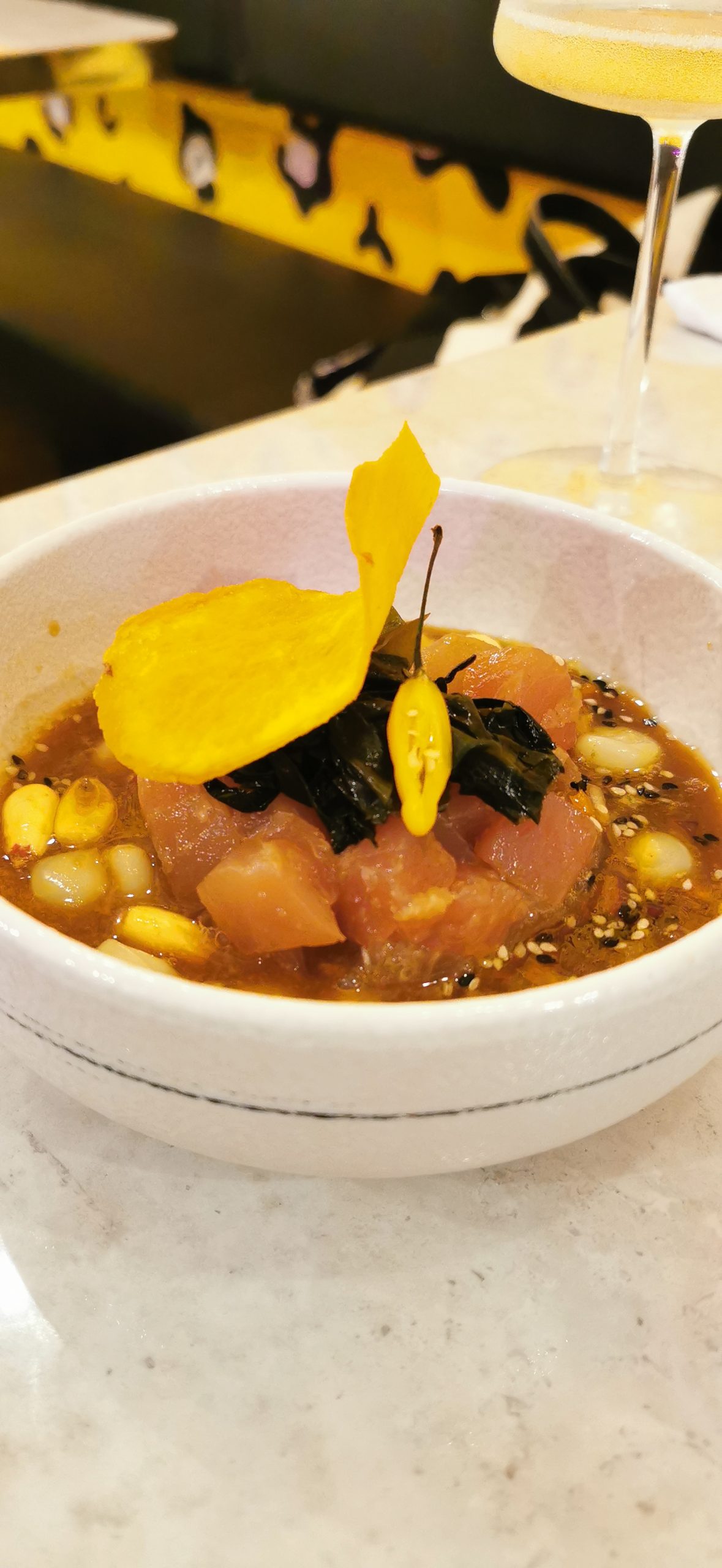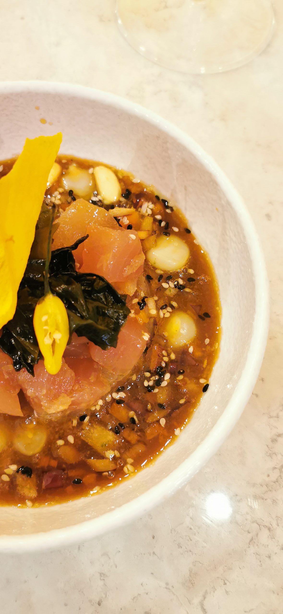Questo ceviche nikkei mi ha fatto scoprire la corba rossa, un pesce tipico del Gargano che ho apprezzato tantissimo per la consistenza e il sapore deciso delle sue carni.