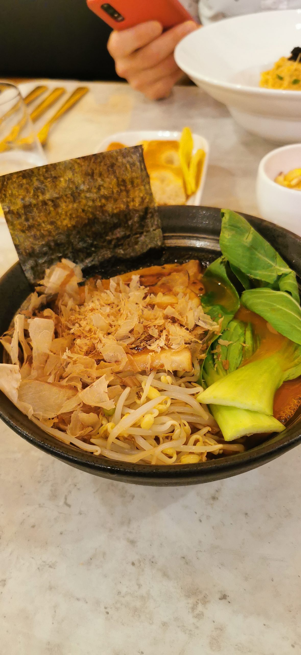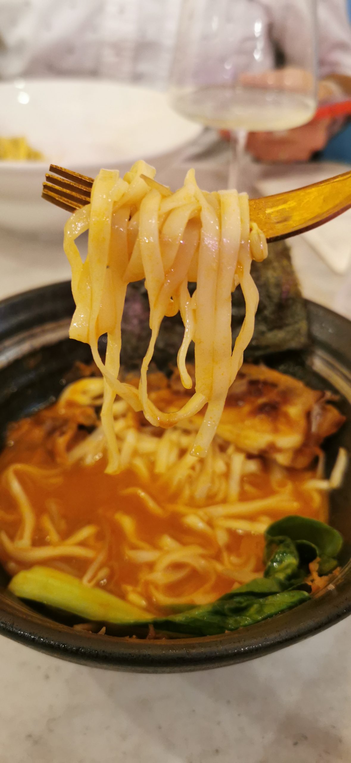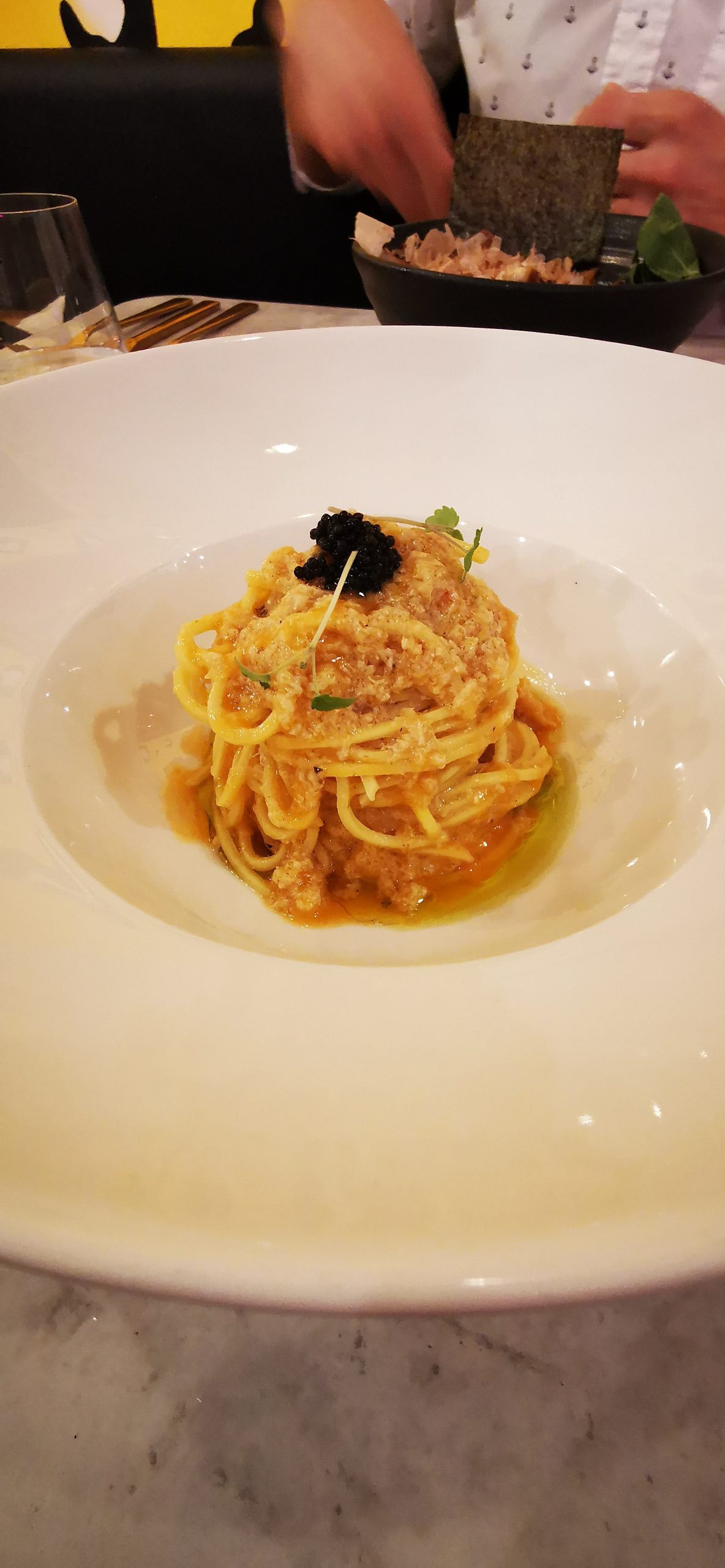 Come primi abbiamo assaggiato il “ramen El crab” e i tagliolini con granchio e lemongrass, che ci hanno trasportati in un interrail virtuale tra Asia e Italia.
