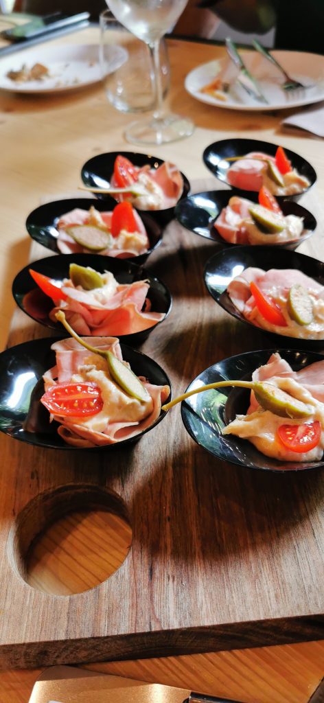 La sequenza di assaggi di Lorenzo è stata abbinata al loro 1965, metodo classico 90% Avanà e 10% Pinot nero.